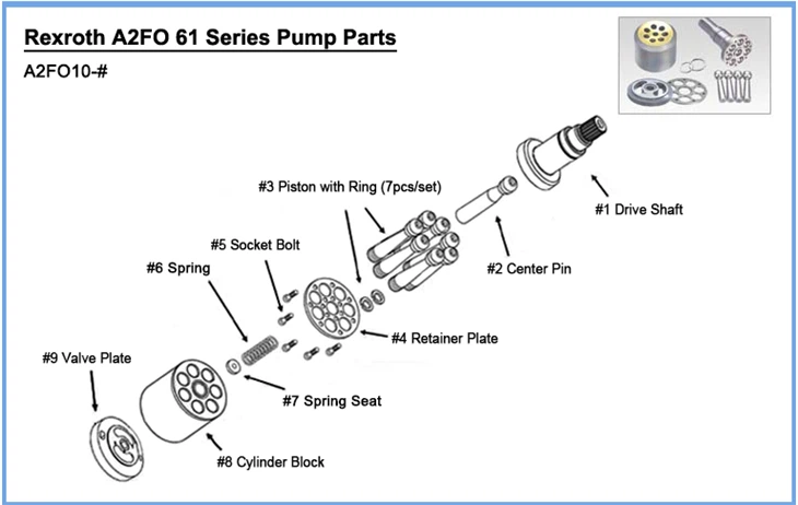 Обеспечивает восстановление новой ротационной группы поршневого насоса A2FO10, замены и запасных частей, 100% совместимых с оригинальным REXROTH, деталями поршневого насоса хорошего качества и более экономичной цены.